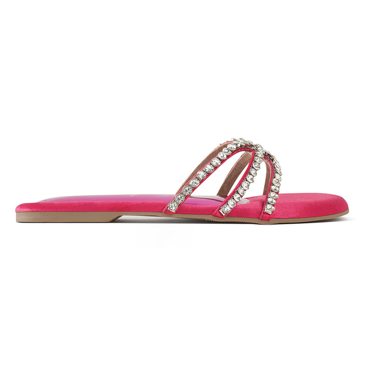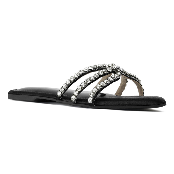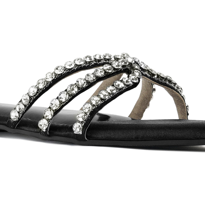 Get party ready in these diamante strappy sandals that will surely turn heads and make your outfit shine. The flat sandals are comfy and easy to wear. Its light padded insole will give you all day comfort.