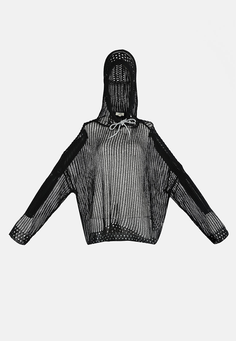The knitted hoodie is a see-through top wear that is easy and has a relaxed fit. With an underlying grunge aesthetic, the hoodie is a great layering element for fall and winter outfits and has a cool and edgy vibe. - Type : Hoodie - Material : 100% Viscose - Sleeve: Loose-fitted - Full Sleeves - Fit: Relaxed Oversized - Comfort Fit - Neck: Closed Neck - Attached Hood - Bow Detail - Hand wash cold - CLG8729