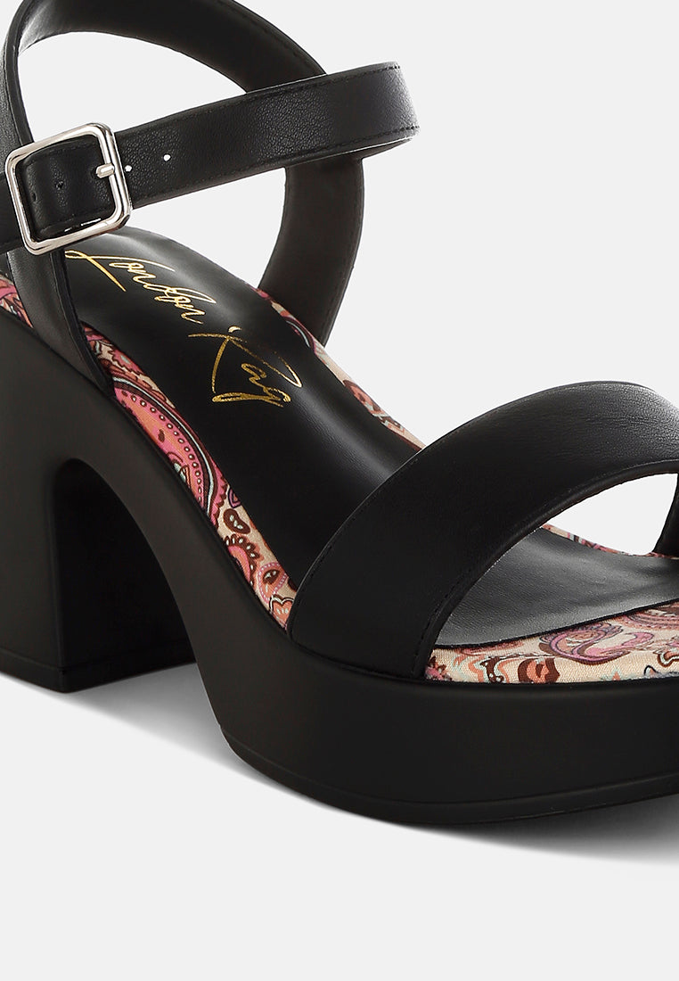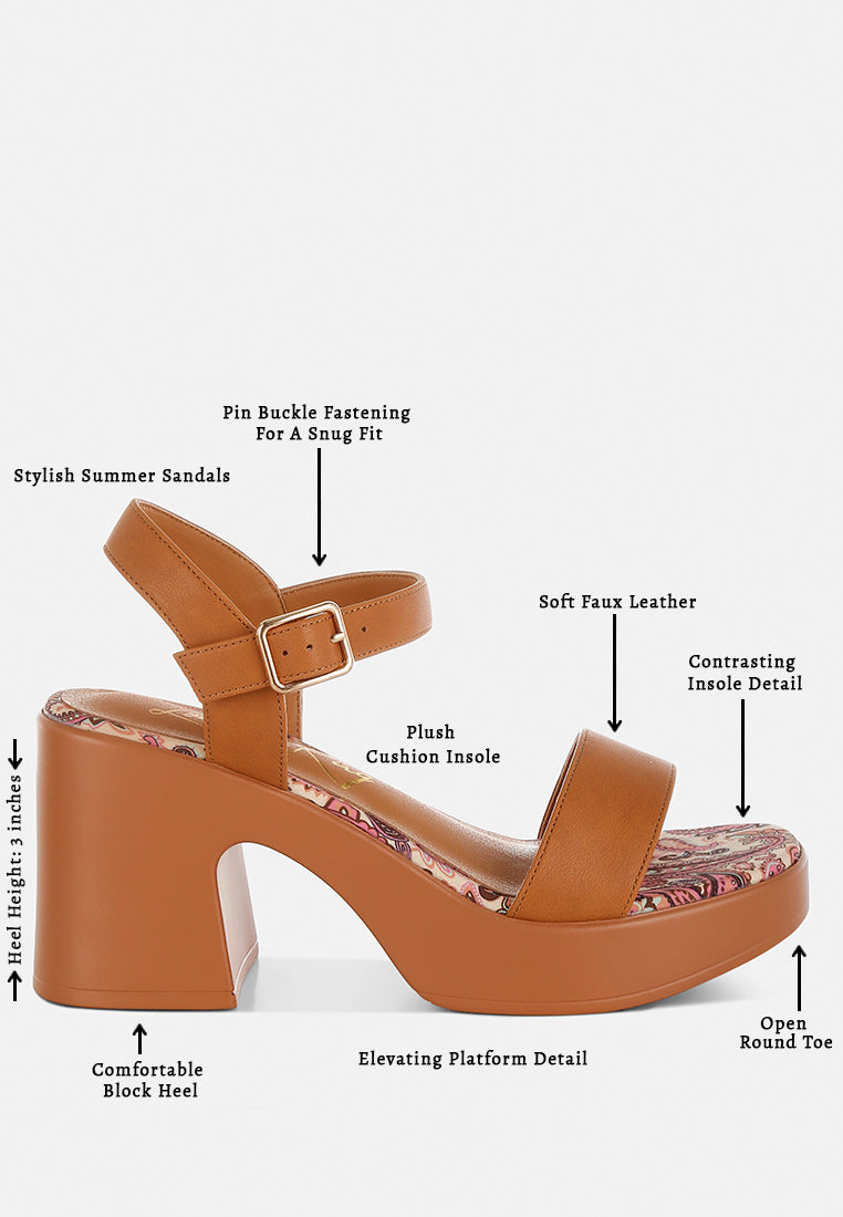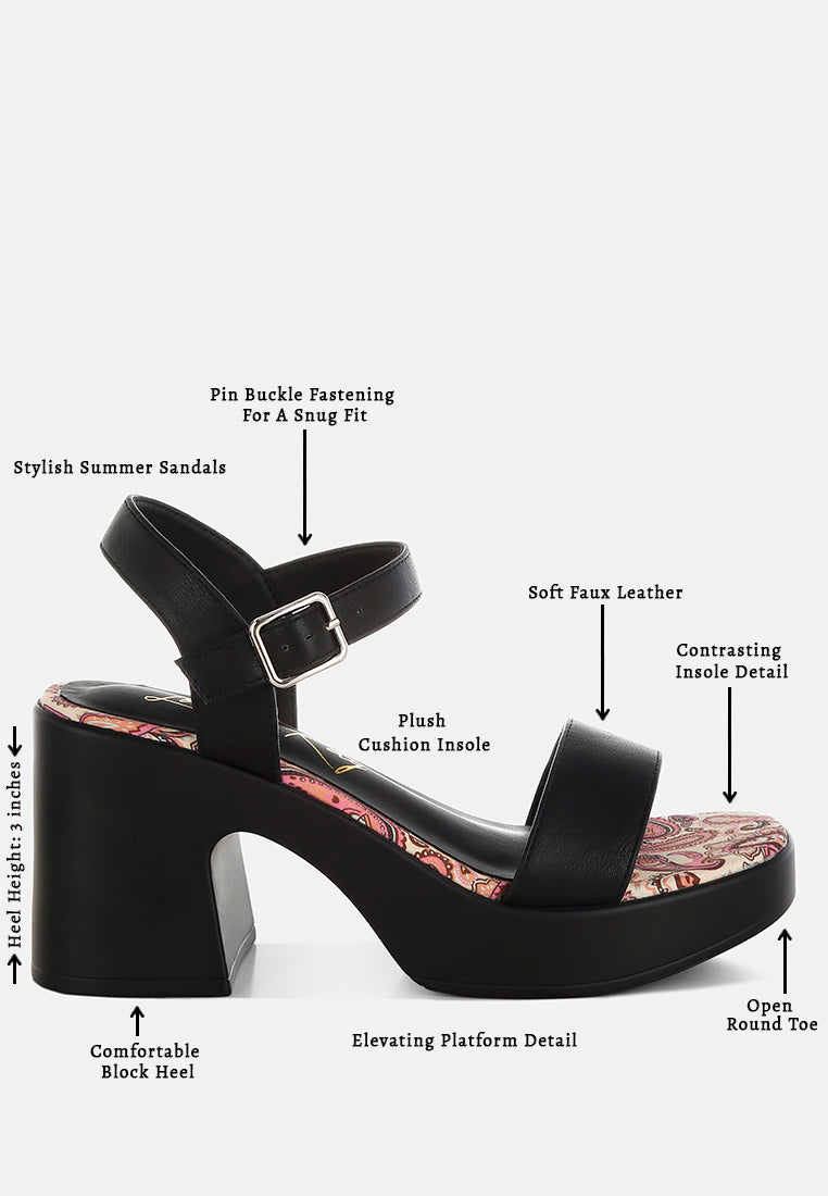 Look chic and fabulous in these pin buckle block heel sandals! This stylish pair with contrasting printed insole, an elevating platform sole, and a fancy pin buckle ankle strap will give you the perfect blend of class and sass. Get ready to wow the crowd!