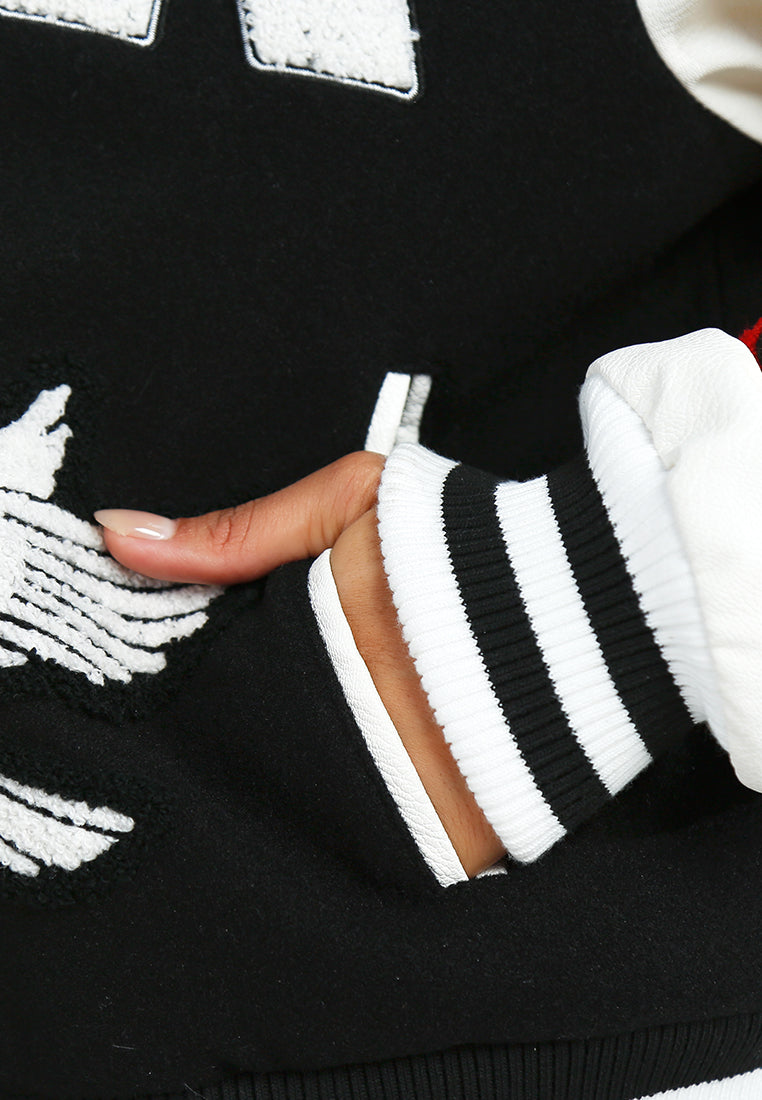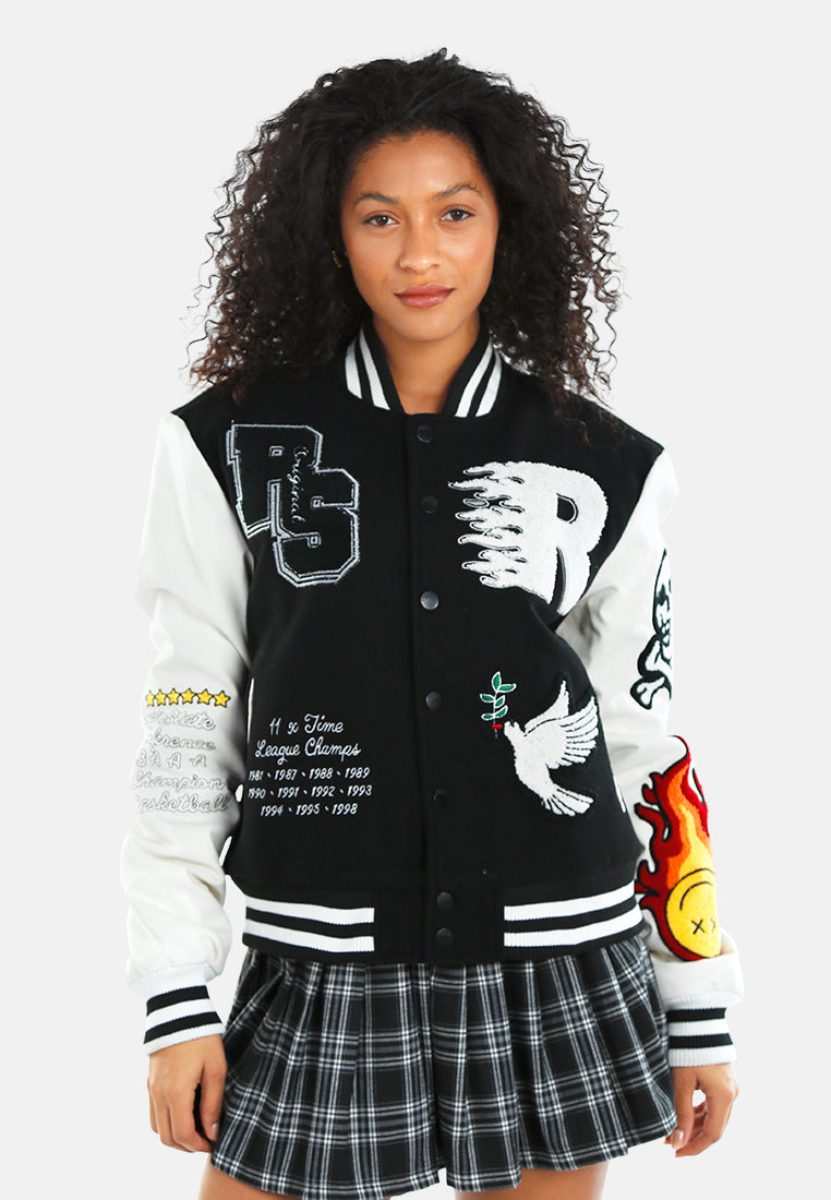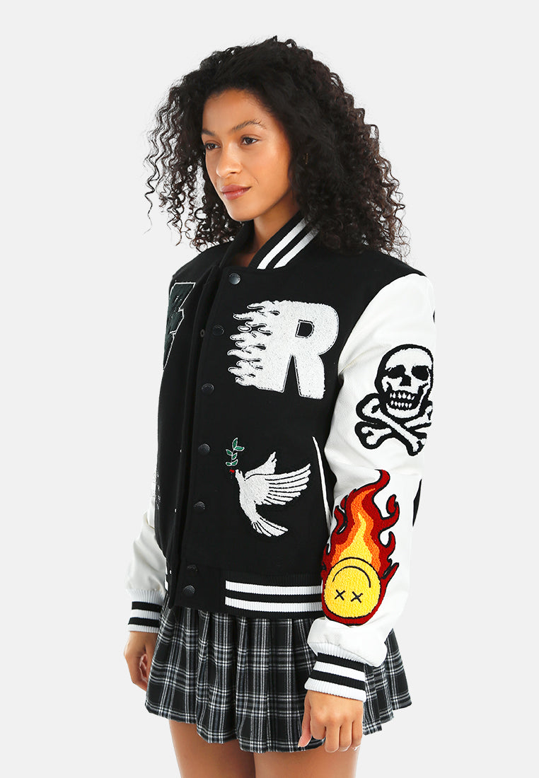 You can't go wrong with a chic varsity jacket! Edgy and stylish, it's a great way to elevate basics, while still keeping it casual. The jacket has cool patchwork, beautiful embroidery work, which looks ravishing, and also offers a comfortable fit.