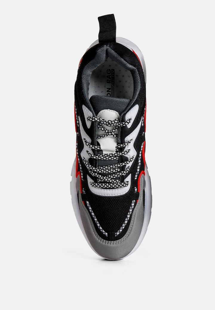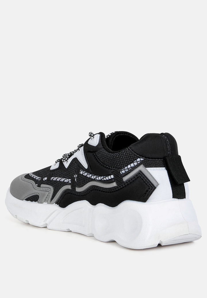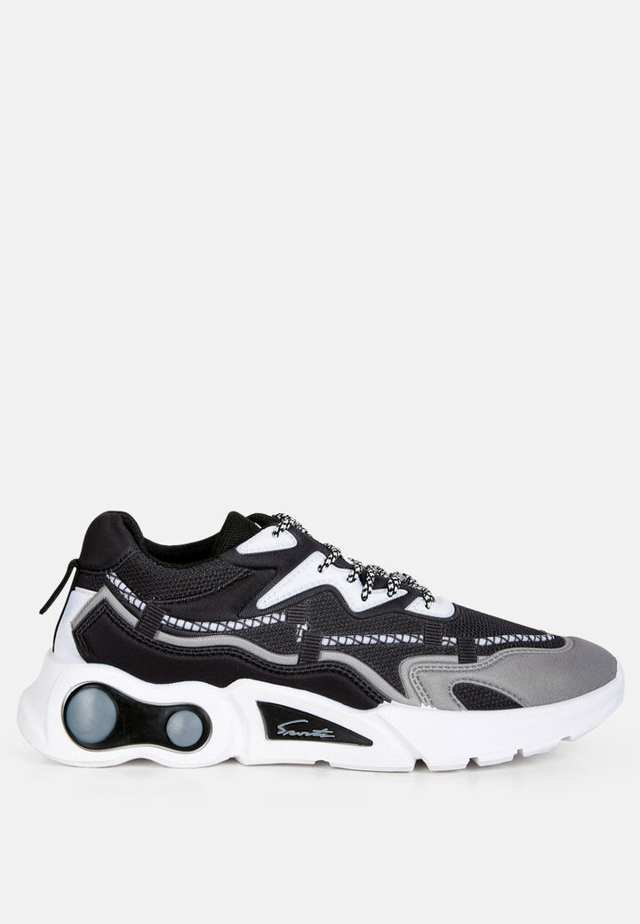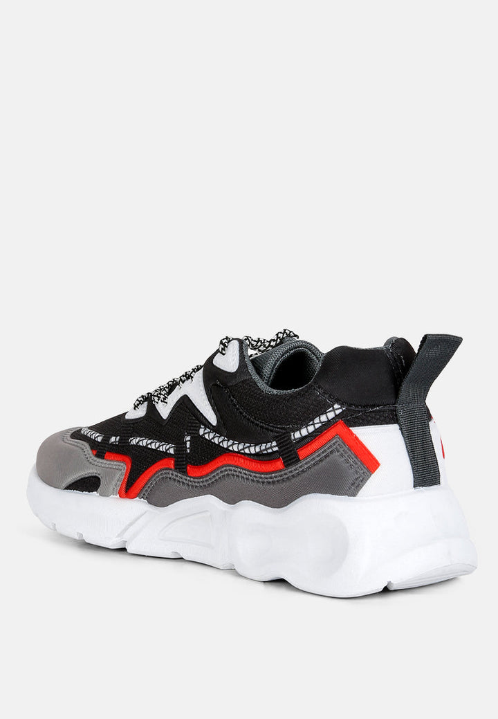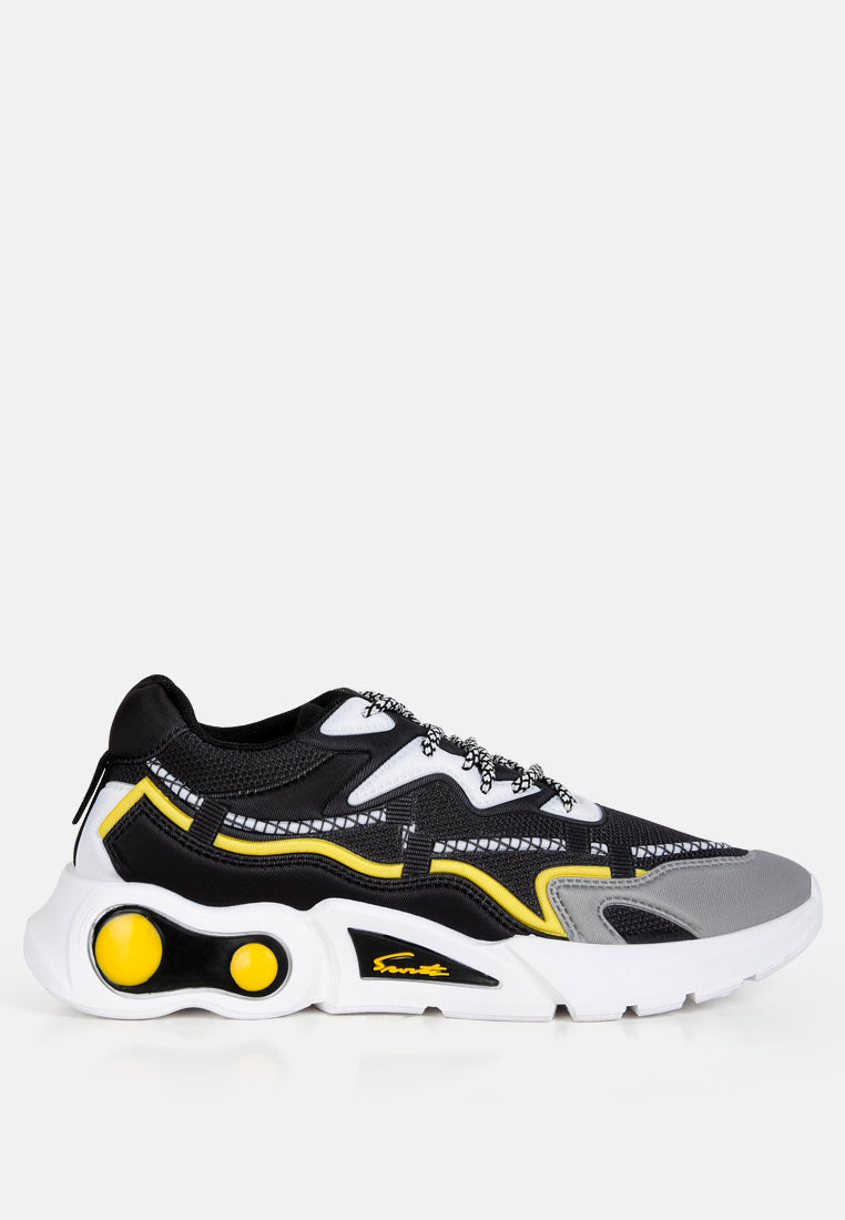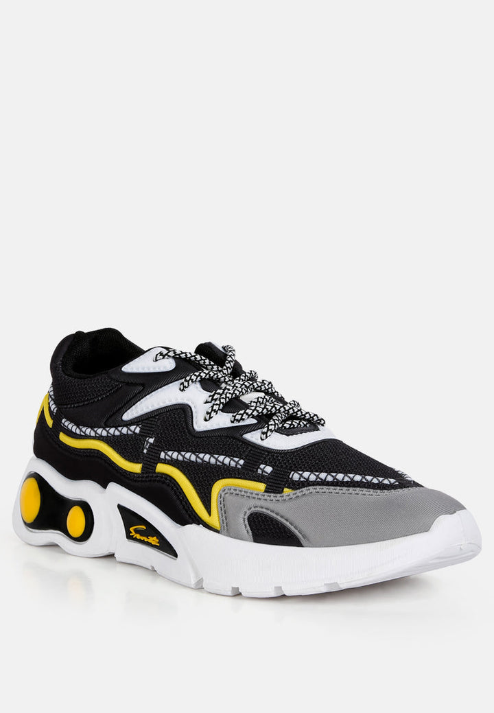 Men's sneakers that are both stylish and cosy. Made with durable and lightweight material, this knit structure walking shoe is for all day wear! Has striking pattern and elements which is a plus with promised utility.