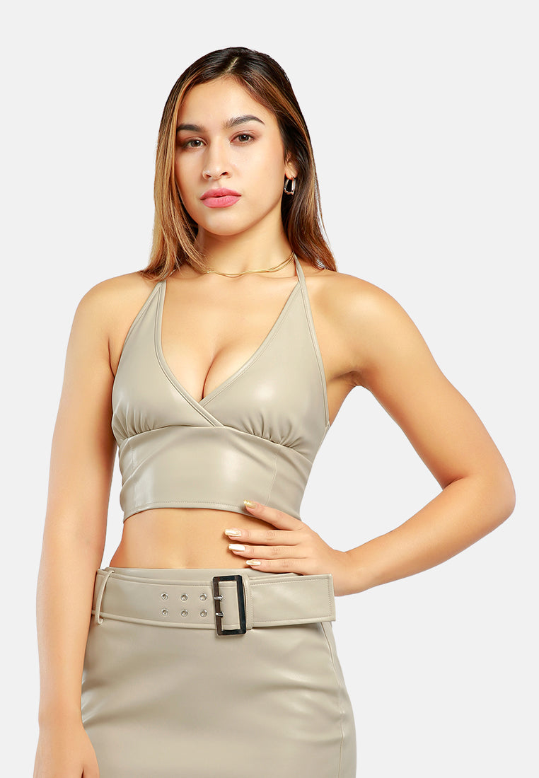 Just steal the lime light with our sleeveless knot crop top. Its back zipper closure makes it comfortable to wear. Its cropped length and thin shoulder knot strap details give a jazz-up look. To style your outfit more glamorous, pair it with platform boots.